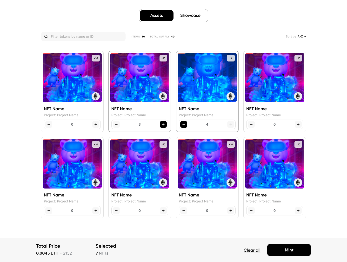 Collectors can now browse the available assets in your drop page and choose the ones they want to mint. Selected assets are instantly added to a minting cart.