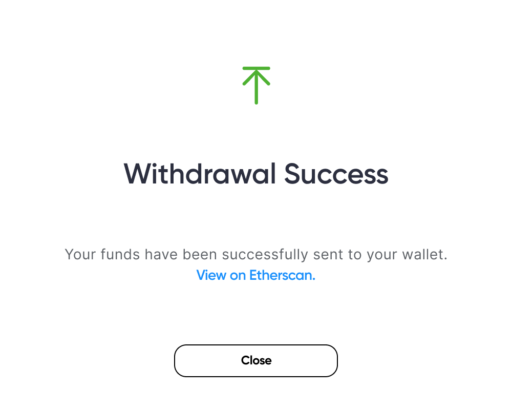 - Sign the transaction in your wallet and pay the gas fees. A new pop-up window will notify you when the withdrawal is complete.